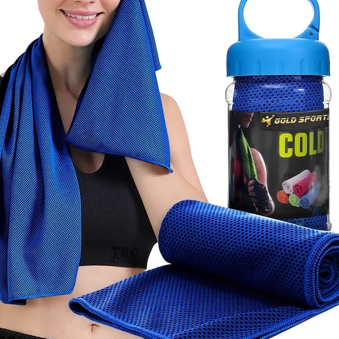 A Toalha de Microfibra Gold Sports Ultra Refrescante Cool II é perfeita para pessoas que sofrem de efeitos colaterais de estresse por calor, ondas de calor na prática de atividades ao ar livre e exercícios internos. Atua na prevenção de insolação, na proteção solar, resfriamento, absorção de suor e também como terapia para alívio da febre e dor de cabeça. A toalha de resfriamento é sedosa, macia, flexível e confortável, dobra-se facilmente. Esta toalha leves são utilizada para absorver água e suor, permitindo-lhe ficar seco, aliviando o calor e o mal estar. A tecnologia de tecido de fibra super absorvente da toalha de malha regula a água no interior e garante a retenção de água, por isso é tratada como um condicionador de ar e em segundos você esfria. Mantenha-se fresco durante os dias quentes de verão. Para ativá-la basta deixar de dentro da água por 1 minuto, tirar o excesso de água, sacudi-la e em seguida aproveitar a sensação refrescante, a toalha permanecerá fria por horas. Recomendada para todos os tipos de esportes ou quem deseja apenas se refrescar. Ao colocar no corpo sentirá o frescor da sua tecnologia de resfriamento instantâneo. É incrivelmente fácil de guardar, podendo ser levada para qualquer lugar.