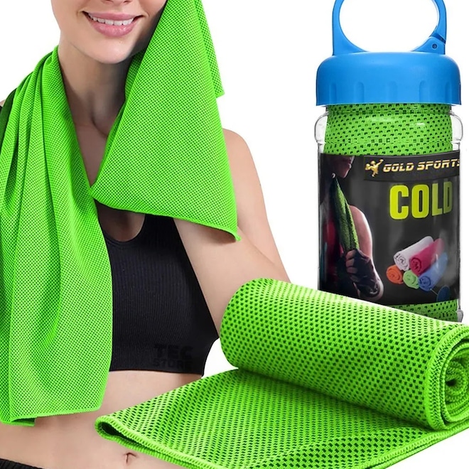 A Toalha de Microfibra Gold Sports Ultra Refrescante Cool II é perfeita para pessoas que sofrem de efeitos colaterais de estresse por calor, ondas de calor na prática de atividades ao ar livre e exercícios internos. Atua na prevenção de insolação, na proteção solar, resfriamento, absorção de suor e também como terapia para alívio da febre e dor de cabeça. A toalha de resfriamento é sedosa, macia, flexível e confortável, dobra-se facilmente. Esta toalha leves são utilizada para absorver água e suor, permitindo-lhe ficar seco, aliviando o calor e o mal estar. A tecnologia de tecido de fibra super absorvente da toalha de malha regula a água no interior e garante a retenção de água, por isso é tratada como um condicionador de ar e em segundos você esfria. Mantenha-se fresco durante os dias quentes de verão. Para ativá-la basta deixar de dentro da água por 1 minuto, tirar o excesso de água, sacudi-la e em seguida aproveitar a sensação refrescante, a toalha permanecerá fria por horas. Recomendada para todos os tipos de esportes ou quem deseja apenas se refrescar. Ao colocar no corpo sentirá o frescor da sua tecnologia de resfriamento instantâneo. É incrivelmente fácil de guardar, podendo ser levada para qualquer lugar.