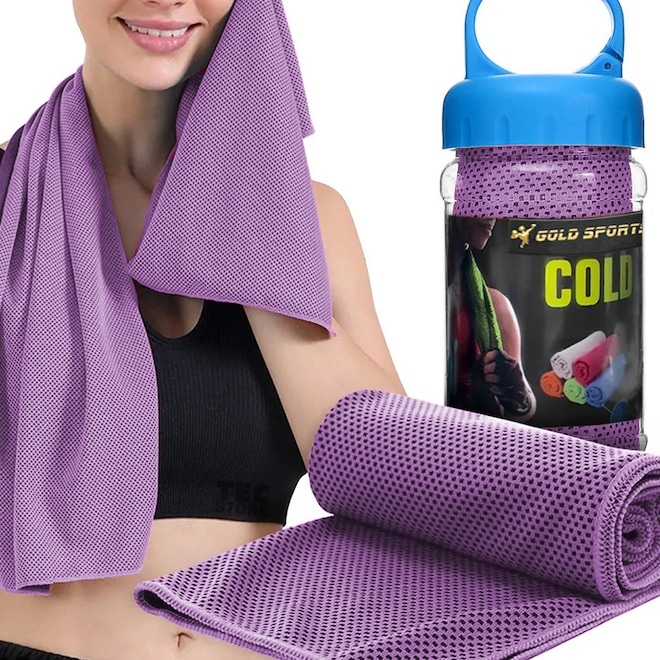 A Toalha de Microfibra Gold Sports Ultra Refrescante Cool II é perfeita para pessoas que sofrem de efeitos colaterais de estresse por calor, ondas de calor na prática de atividades ao ar livre e exercícios internos. Atua na prevenção de insolação, na proteção solar, resfriamento, absorção de suor e também como terapia para alívio da febre e dor de cabeça. A toalha de resfriamento é sedosa, macia, flexível e confortável, dobra-se facilmente. Esta toalha leves são utilizada para absorver água e suor, permitindo-lhe ficar seco, aliviando o calor e o mal estar. A tecnologia de tecido de fibra super absorvente da toalha de malha regula a água no interior e garante a retenção de água, por isso é tratada como um condicionador de ar e em segundos você esfria. Mantenha-se fresco durante os dias quentes de verão. Para ativá-la basta deixar de dentro da água por 1 minuto, tirar o excesso de água, sacudi-la e em seguida aproveitar a sensação refrescante, a toalha permanecerá fria por horas. Recomendada para todos os tipos de esportes ou quem deseja apenas se refrescar. Ao colocar no corpo sentirá o frescor da sua tecnologia de resfriamento instantâneo. É incrivelmente fácil de guardar, podendo ser levada para qualquer lugar.