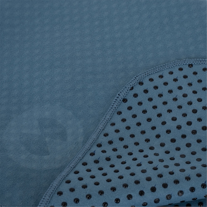 A Toalha de Yoga Oxer Antiderrapante, feita de poliéster e poliamida, proporciona aderência e conforto durante os treinos.