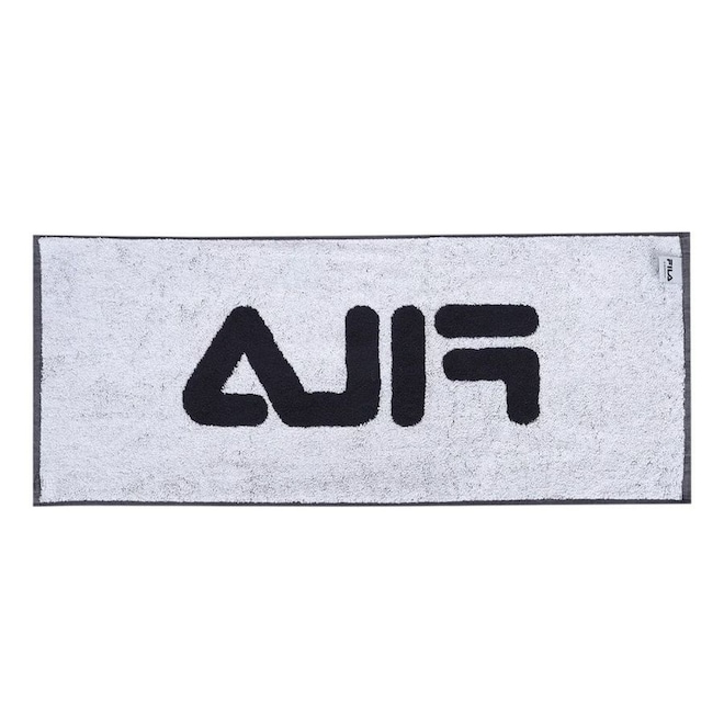 - Detalhamento: Toalha felpuda na cor marinho, frente com a escrita FILA em branco centralizada e verso com cores invertidas, acabamento em viés nas laterais