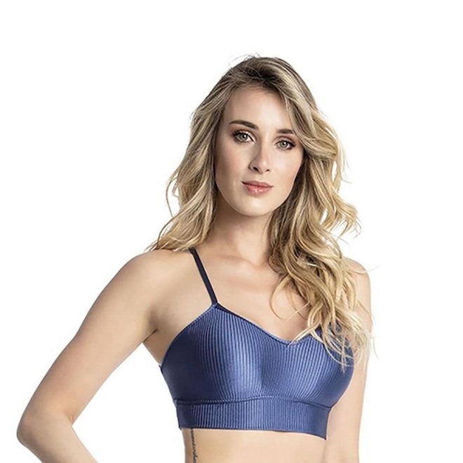 Confeccionado em poliamida, o top possui uma superfície texturizada e brilhante, com alças finas e um design super moderno. Proporciona uma ótima sustentação ao seio, oferecendo muita firmeza. Além disso, o bojo pode ser removido com muita facilidade.