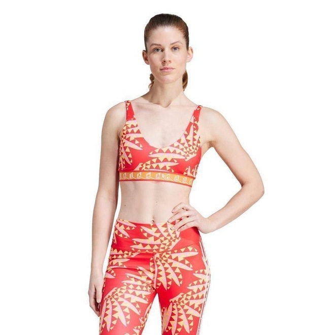 Nome: Top Adidas Farm Gênero: Feminino Indicado para: Praticas esportivas Composição: 85% poliéster reciclado, 15% elastanoBojo: Bojos removíveisAlças: Suporte Médio, alças duplas nas costas