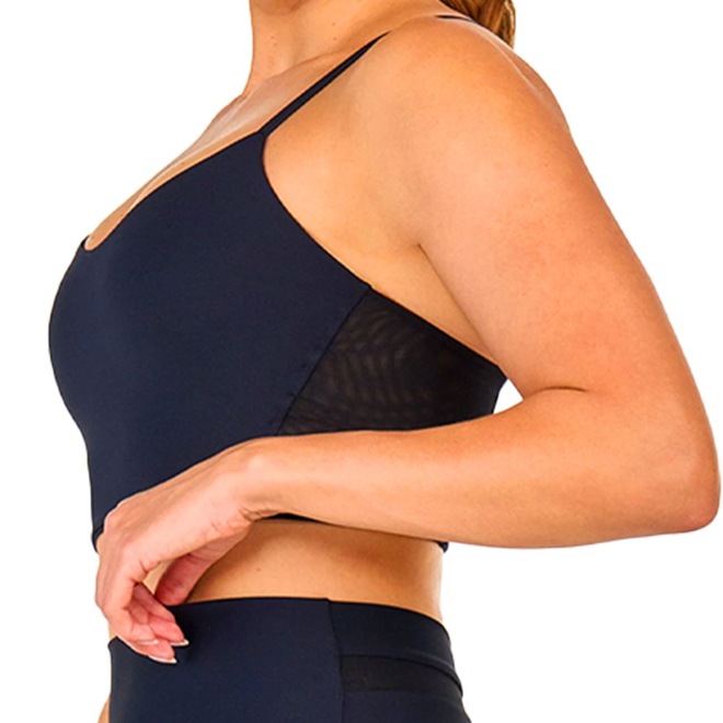 O Top Alto Giro Alças Finas Feminino apresentando alcinhas finas estilo regata, que sustentam o busto e proporciona mais conforto, principalmente durante exposição ao sol, evitando marcas muito evidente. A frente é lisa, com elástico embutido para melhor sustentação no cós na parte interna, trazendo um visual mais clean. Garanta já o seu! 85% poliamida, 15% elastano;Sem Bojo;Alças finas.ref: M16HM2