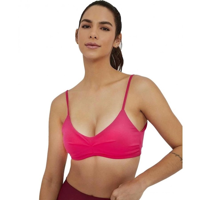 Possui detalhe de argola nas costas, trazendo um desenho delicado, bojo removível e cós com elástico que contribui para a sustentação.