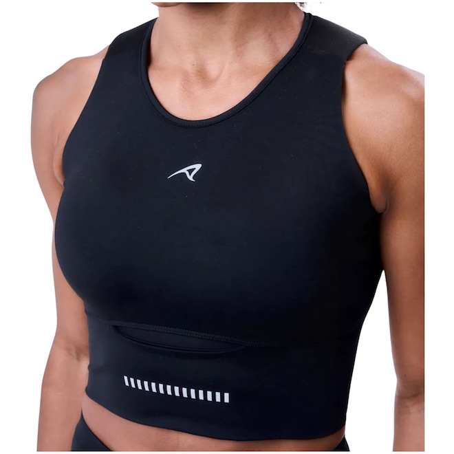 Modelagem Exclusiva Authen: O modelo cropped e com decote alto garante maior proteção e controle do movimento dos seios. As alças acolchoadas aliviam a pressão dos ombros, enquanto as costas com tecido mesh facilitam a troca de calor.