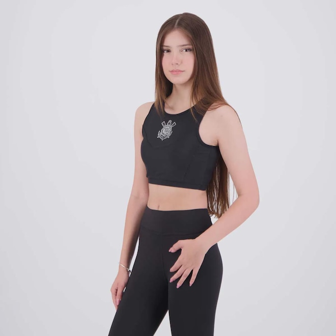 Composição: 85% Poliamida e 15% Elastano Cor Predominante: Preto Clube: Corinthians Escudo: Estampado Gênero: Feminino Origem: Nacional Manga: Regata Gola: Careca Forro: Não Bojo: Não Dimensões aproximadas (A x L): P: 32 x 34 cm M: 34 x 36 cm G: 36 x 38 cm GG: 38 x 40 cm