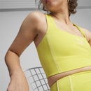 Diretamente dos arquivos PUMA dos anos 1970, o T7 recebe uma nova atualização e, desta vez, o reformulamos como um top cropped. É ajustado, muito mais justo do que a blusa OG, tem decote redondo e tiras cruzadas nas costas para máxima liberdade de movimento. É claro que as listras exclusivas ainda estão nas laterais.