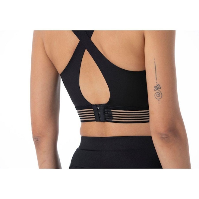 - Sobre o produto - Top Fitness Mizuno High - Feminino- Top feito em malha de poléster com elastano de média compressão. Possui regulagem nas costas, barra de elástico e contém bojo removível. Frente estampada. Logo refletivo. - ref: M1276B