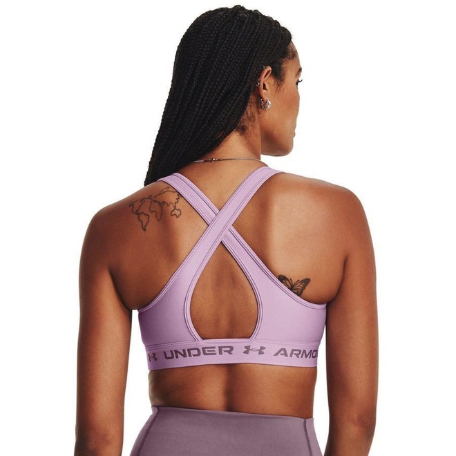 O Top de Treino Feminino Under Armour Crossback Mid Bra oferece suporte estratégico, adaptado para atividades de suporte médio, como ciclismo, musculação e boxe.