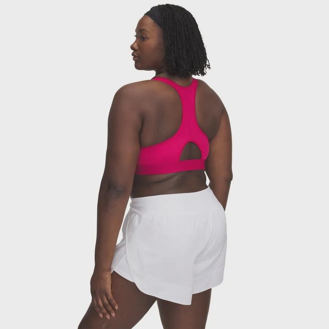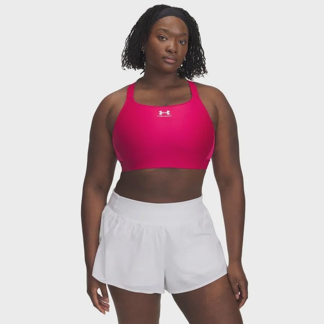 O sutiã utiliza o poder do tecido HeatGear®, que é ultraleve e possui incrível absorção de suor, mantendo a pele seca e fresca do início ao fim do exercício.