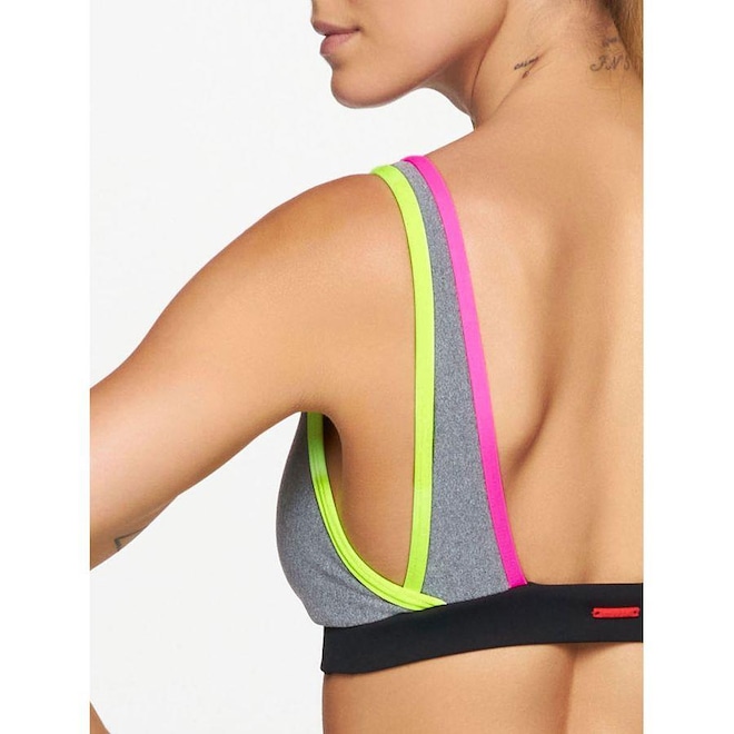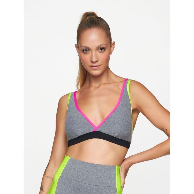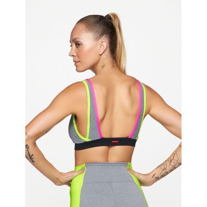 O diferencial da família Breath sem dúvidas é o tecido Gray, que possui alta tecnologia e é exclusivo Body for Sure. Ele se diferencia dos outros mesclas, devido a sua construção em máquina Ketten e seu alto poder de compressão. As peças ainda contem com outros tecidos em seus detalhes como New Zealand, Body Energize e Bio Body. Top com bojo removível, barra e recortes nas alças e decote em cores contrastantes. Sustentação Leve. Referência: 2673 Linha: Breath Tecidos: Gray, New Zealand, New Zealand Black, Luna. Gray: 81,35 Poliamida e 18,65% Elastano. Tecido revolucionário exclusive da Body For Sure, explora vários conceitos de alta tecnologia. Associa a microfibra mescla texturizada em máquina "ketten" e utiliza o elastano com alto poder de compressão. New Zealand: 88% Poliamida e 12% Elastano. Tecido de compressão alta, oferece sustentação e tem toque soft e a tecnologia black no fio. Indicação de uso: esportes de alto impacto. New Zealand Black: 88% Poliamida e 12% Elastano. Tecido de compressão alta e sustentação, conta com a tecnologia LYCRA® Black, que fornece uma solução altamente eficaz para o problema de transparência. Indicação de uso: esportes de alto impacto. Tecnologia LYCRA® Black: A roupa com essa tecnologia não perde a cor, nem apresenta menos brilho ou transparência. Conforto e performance, acompanha seu movimento. Durabilidade, não perde a forma após a lavagem. Luna: Poliamida 88,6% e Elastano 11,4%. Toque agradável em contato com a pele, garante proteção térmica perfeita e a evaporação natural da transpiração. Proteção U.V. Indicação de uso: Todos tipos de esporte ao dia a dia.