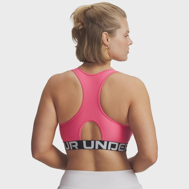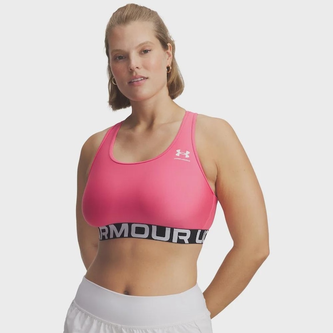 Oferece suporte estratégico, desenvolvido para atividades de médio impacto, como ciclismo, musculação e boxe. Modelo inteiro clássico com design de costas nadador e abertura arredondada para ventilação extra e para vestir com maior facilidade. Cós elástico macio com detalhe da marca para um ajuste firme. O tecido HeatGear® proporciona uma sensação superior em contato com a pele. O material absorve o suor e seca muito rápido. Tecido com elasticidade em 4 direções. Forro duplo para cobertura, sem bojo.