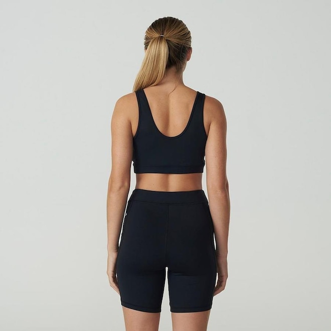 Top feminino confeccionado em poliamida com elastano. Possui barra com elástico interno, alças com 3 cm de largura e acabamento em viés, forro frontal e logo Umbro em termo centralizado na parte frontal. ''ref: M102N4