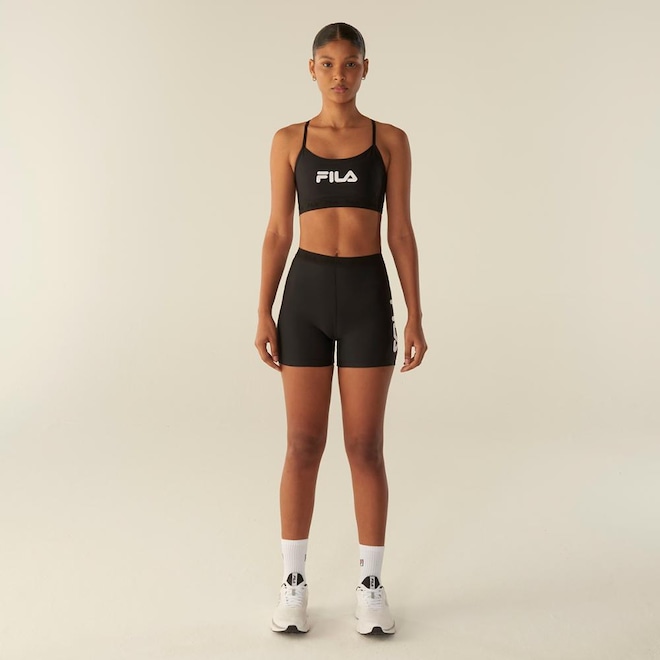 Top cropped feito em malha de poliéster com elastano sustentável, oferecendo tecnologia UV PROTECTION FPS 50+ para as práticas esportivas. A modelagem nadador com alças finas garante liberdade de movimento, enquanto as laterais deslocadas para frente evitam atrito de costuras nas cavas. A peça é totalmente forrada, com viés aplicado na gola e cavas e barra com elástico personalizado para melhor ajuste. Logo FILA Linear aplicado no centro da parte frontal.