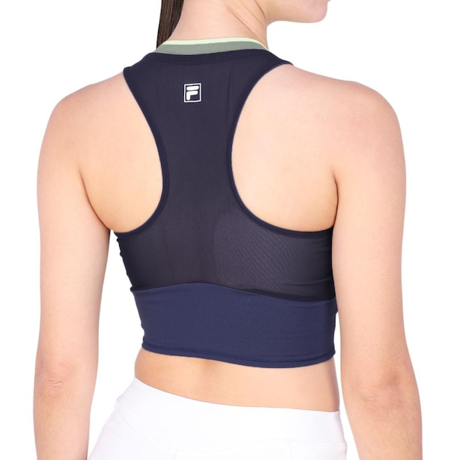- Detalhamento: Top com bojo removível, recorte nadador nas costas, tecido macio e confortável para bom ajuste ao corpo, parte do tecido telado nas costas garantindo ótima respirabilidade. Logo Fila centralizada na parte de trás superior;