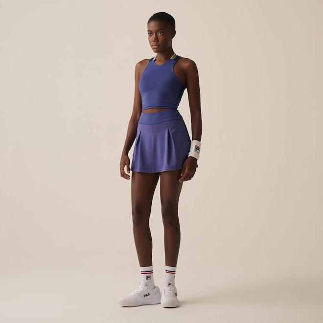 O Top Feminino FILA Match AO combina tecnologia e design funcional para alta performance. Desenvolvida em malha de poliamida com elastano, oferece ajuste slim, além das tecnologias Flow e proteção solar FPS 50+. Possui decote em V, gola em retilínea, forro interno frontal e costas em modelo nadador com recorte em V invertido em tecido mesh, garantindo respirabilidade. O acabamento da barra utiliza costura trançadeira, e as cavas têm viés interno.ref: M17M8W