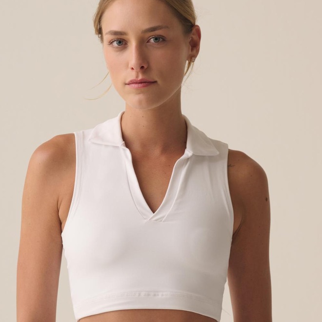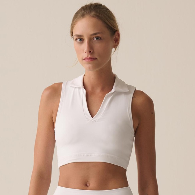 Top feminino confeccionado em malha de poliéster elastizado com forro frontal. Modelagem slim fit, ajustada ao corpo, com gola polo e decote em V. Seu tecido contém as tecnologias FLOW, que oferece secagem rápida e mantém o corpo na temperatura ideal para a prática esportiva, e a UV PROTECTION, que fornece proteção solar FPS 50+ dos raios UVA e UVB. Possui acabamentos pespontados na trançadeira e patch F-box em termo centralizado próximo à barra traseira.ref: M17M9B