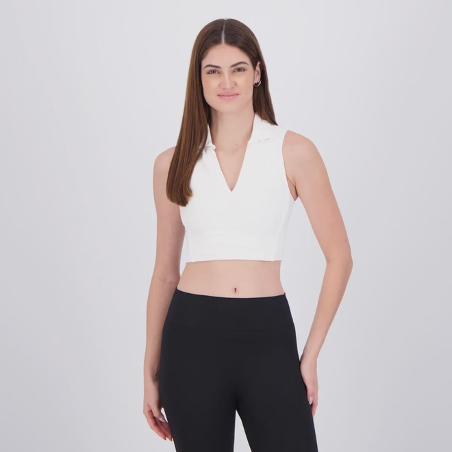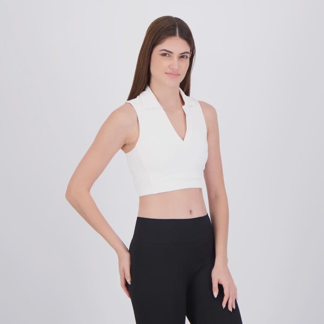 Tecnologia: UV Protection: Protege a pele contra os raios ultravioleta, reduzindo os efeitos nocivos do sol durante atividades ao ar livre. Composição corpo e forro: 86% Poliamida e 14% Elastano Cor Predominante: Branco Gênero: Feminino Origem: Nacional Logo: Estampada Esporte: Tênis Layout: Peça lisa com design clean; recortes estruturais laterais e gola polo esportiva com abertura frontal em V Manga: Regata Gola: Polo com abertura V profunda Bojo: Não Indicação de uso: Tênis, treinos leves, atividades esportivas e lifestyle esportivo. Cuidados com a peça: Lavar à mão ou em ciclo delicado, secar à sombra, evitar alvejante e não passar ferro diretamente na peça. Dimensões aproximadas (A x L): P: 42 x 34 cm M: 44 x 37 cm G: 45 x 39 cm GG: 47 x 41 cm EG: 49 x 43 cm EEG: 51 x 45 cm