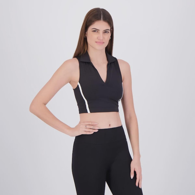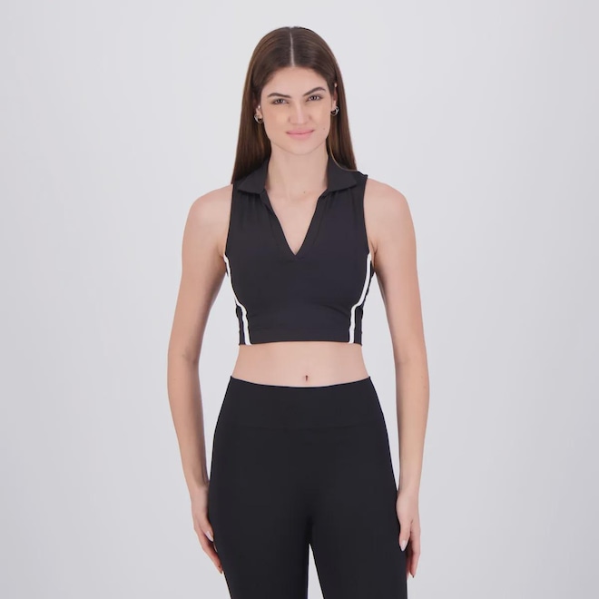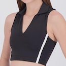 Tecnologia: UV Protection: Protege a pele contra os raios ultravioleta, reduzindo os efeitos nocivos do sol durante atividades ao ar livre. Composição corpo e forro: 86% Poliamida e 14% Elastano Cor Predominante: Preto Gênero: Feminino Origem: Nacional Logo: Estampada Esporte: Tênis Layout: Peça lisa com design clean; recortes estruturais laterais e gola polo esportiva com abertura frontal em V Manga: Regata Gola: Polo com abertura V profunda Bojo: Não Indicação de uso: Tênis, treinos leves, atividades esportivas e lifestyle esportivo. Cuidados com a peça: Lavar à mão ou em ciclo delicado, secar à sombra, evitar alvejante e não passar ferro diretamente na peça. Dimensões aproximadas (A x L): P: 40 x 33 cm M: 41 x 35 cm G: 44 x 38 cm GG: 47 x 40 cm EG: 49 x 42 cm EEG: 51 x 44 cm