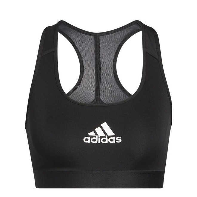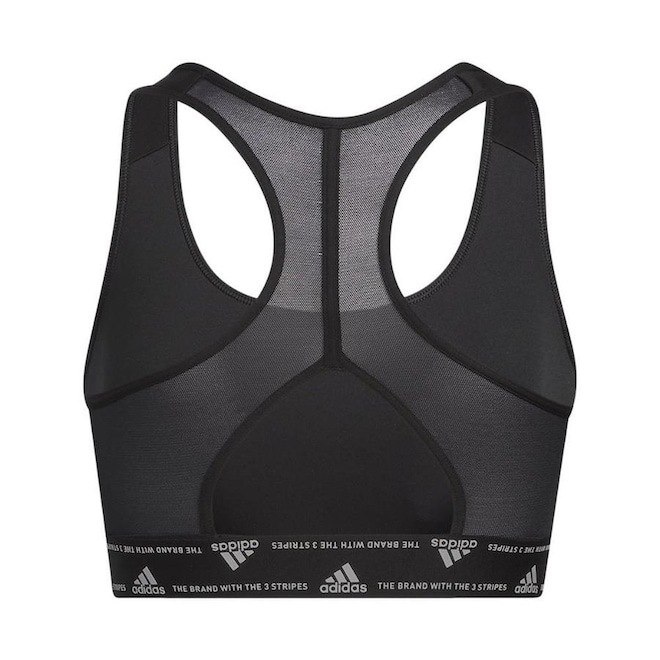 O top fitness adidas tem alças largas, decote traseiro estilo “nadador” e forro.