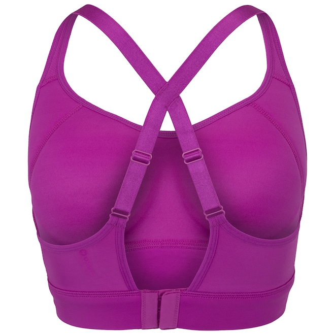 Tem bojo fixo, alta sustentação e suas alças são cruzadas com decote traseiro.