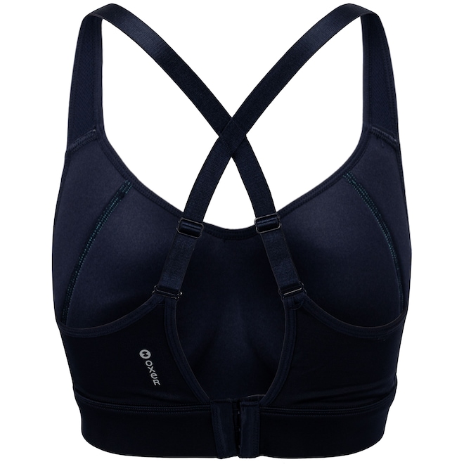 Tem bojo fixo, alta sustentação e suas alças são cruzadas com decote traseiro.