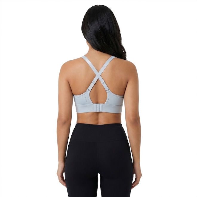 Tem bojo fixo, alta sustentação e suas alças são cruzadas com decote traseiro.