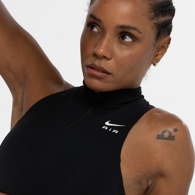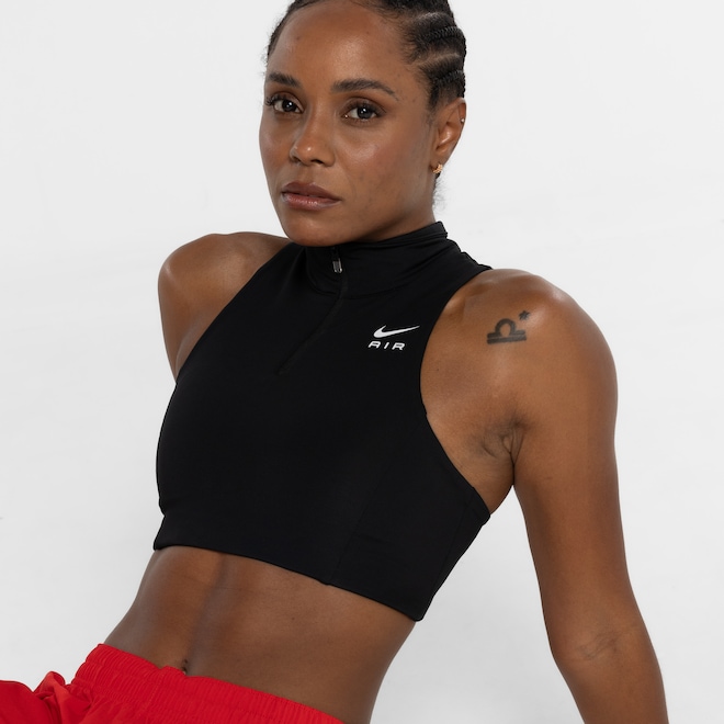 Além da funcionalidade, o top carrega o icônico logo Nike estampado em destaque.