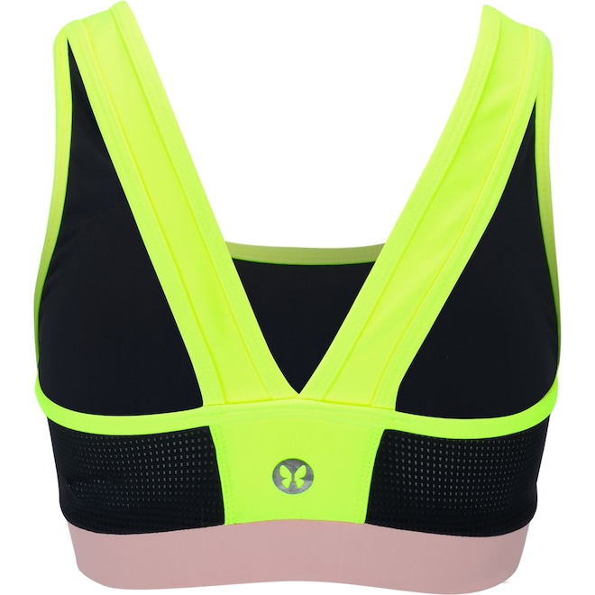 Possui alças largas, tem decote traseiro e tem bojo removível.