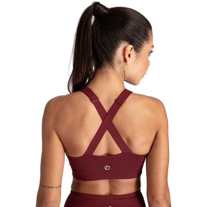 - Detalhamento: Design moderno e funcional. Possui alças elásticas ajustáveis que se cruzam nas costas, garantindo ajuste firme e liberdade de movimento. A parte traseira conta com faixa em tecido perfurado, que favorece a ventilação e o frescor. Com bojo removível, tecido macio e modelagem anatômica, o top combina performance e estilo em uma peça versátil para qualquer atividade física. Nome da marca aplicado na parte frontal centralizada e logo nas costas;