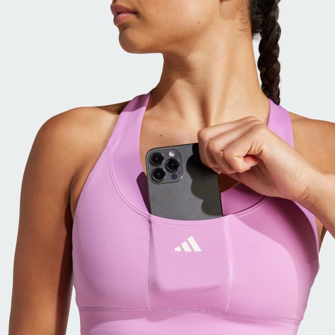 Encare as corridas mais difíceis sem perder o ritmo com este top adidas de suporte médio. O tecido AEROREADY controla a umidade para manter a pele refrescada e a mente focada no ritmo, enquanto o tecido elástico molda-se ao formato do seu corpo para um ajuste livre de irritações. Vários bolsos guardam seus itens essenciais com segurança, celular e chaves, para que você possa correr sem distrações. Os detalhes refletivos ajudam a manter você visível à noite. Este produto é feito com fios que contêm 50% de poliéster reciclado e 50% de Parley Ocean Plastic, resíduos plásticos que interceptamos de ilhas remotas, praias, comunidades costeiras e litorais para evitar que eles poluam os nossos oceanos. No total, este produto tem 70% de conteúdo reciclado.