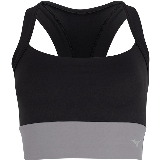 O top fitness Mizuno é de alças largas e elásticas, com decote estilo “nadador”.
