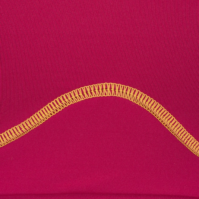 Possui baixa sustentação, suas alças são largas e tem tecido elastano e poliamida.