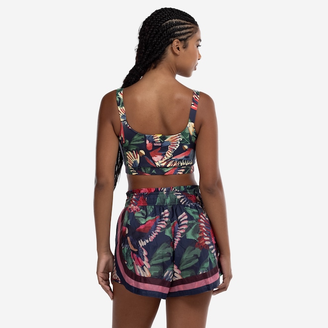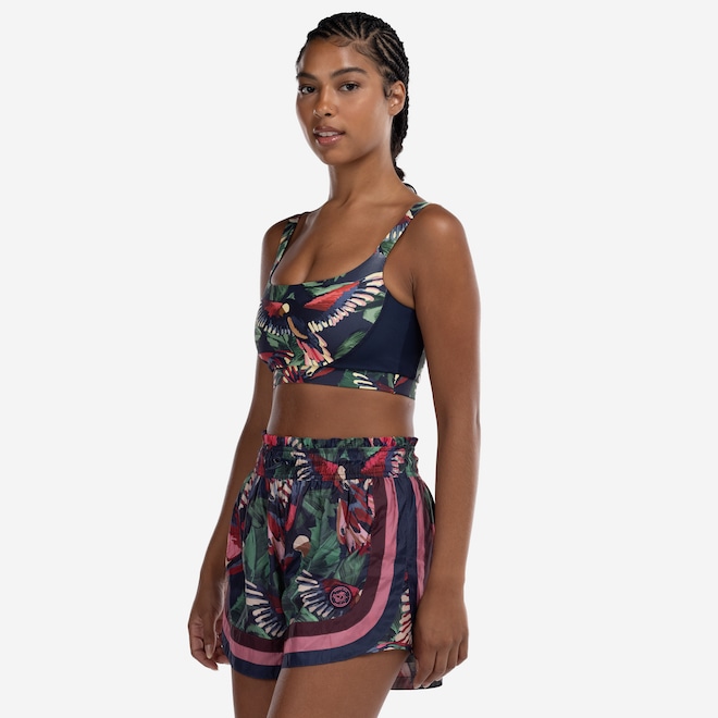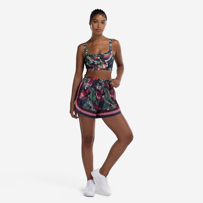 Seu tecido respirável proporciona frescor e conforto durante os exercícios, enquanto a estampa exclusiva traz um visual autêntico e cheio de personalidade.