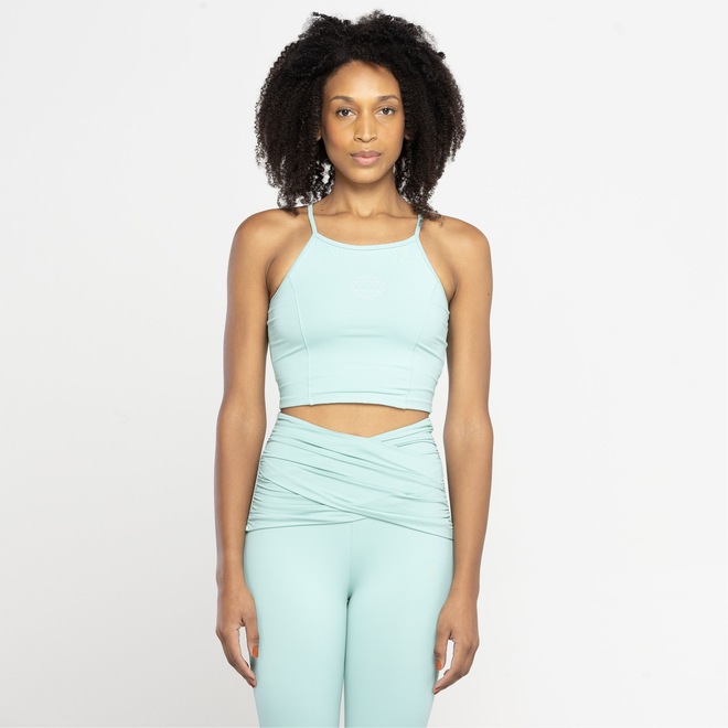 Possui alças finas, não possui bojo e seu caimento oferece uma mobilidade natural e confortável para você se alongar tranquilamente.