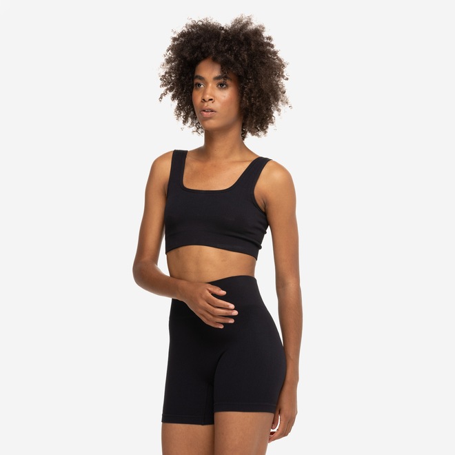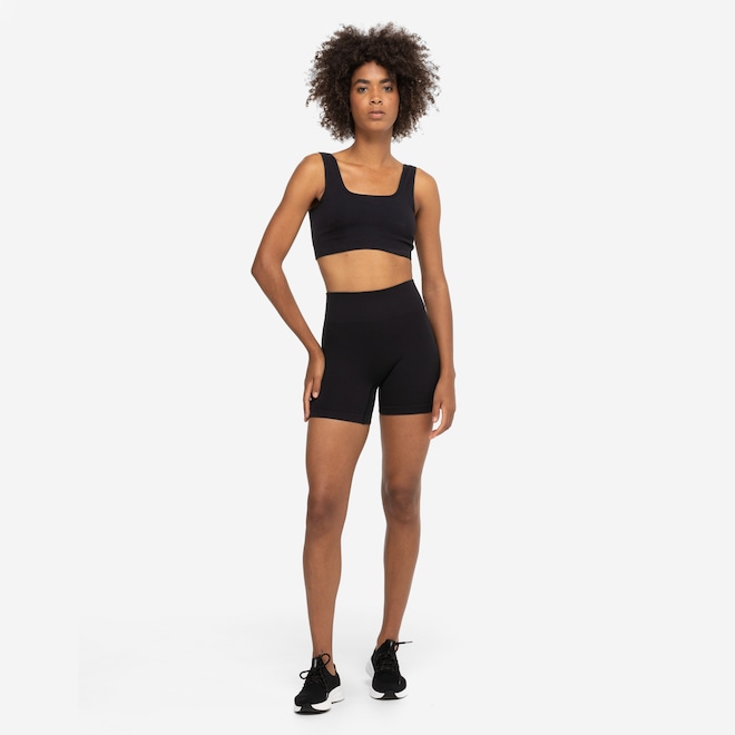 Fabricado com tecido canelado sem costura, proporciona um ajuste suave e confortável, enquanto a sustentação média garante segurança em todas as atividades.