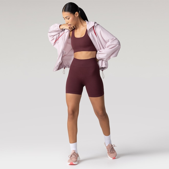 Fabricado com tecido canelado sem costura, proporciona um ajuste suave e confortável, enquanto a sustentação média garante segurança em todas as atividades.