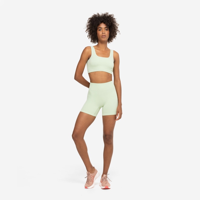 Fabricado com tecido canelado sem costura, proporciona um ajuste suave e confortável, enquanto a sustentação média garante segurança em todas as atividades.