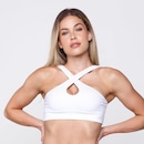 Top fitness confeccionado em suplex poliamida de média compressão, com decote transpassado.