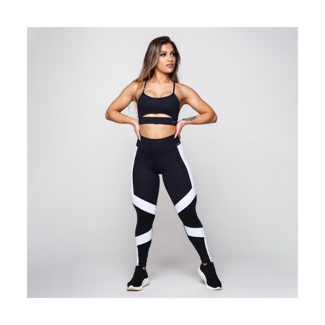 Abertura a cima do cós com elástico embutido para dar um estilo fashion fitness ao seu look de treino.