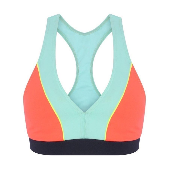Top nadador liso com bojo removível, recorte vivo e barra em cores contrastantes. Sustentação Media. Referência: 03002 Linha: Beach Sports Tecidos: Luna e New Zealand. Luna: Poliamida 88,6% e Elastano 11,4%. Toque agradável em contato com a pele, garante proteção térmica perfeita e a evaporação natural da transpiração. Proteção U.V. Indicação de uso: Todos tipos de esporte ao dia a dia. New Zealand: 88% Poliamida e 12% Elastano. Tecido de compressão alta, oferece sustentação e tem toque soft e a tecnologia black no fio. Indicação de uso: esportes de alto impacto.