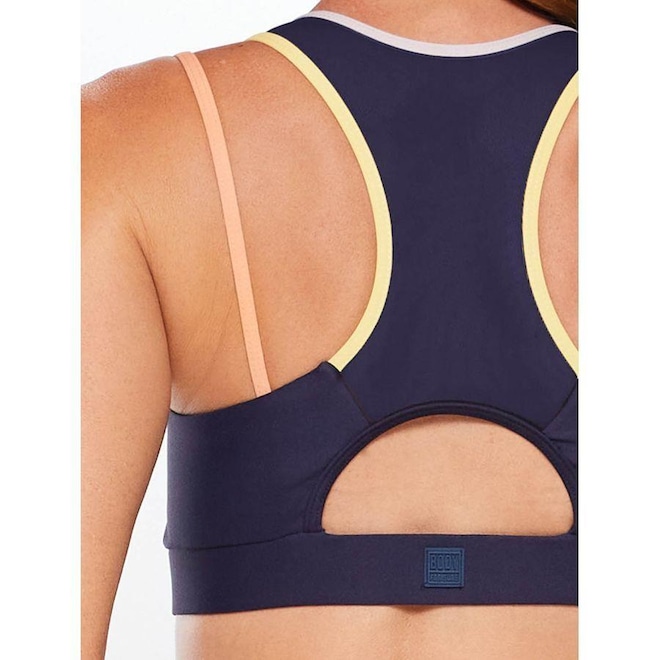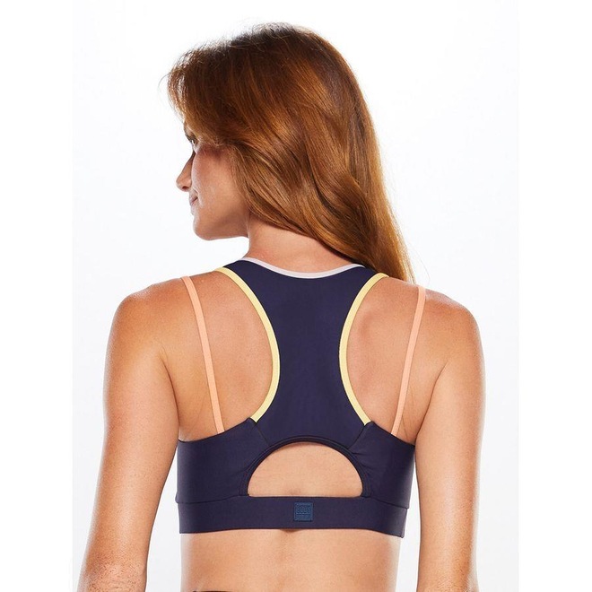 Top nadador liso com detalhe em tule, vivos contrastantes e bojo removível. Sustentação Média. Referência: 4472 Coleção: Zip Tamanhos: P, M, G e GG Tecido: Body Peach + Luna + Tela Power Net BODY PEACH 78% Poliamida 22% Elastano Tecido com aspecto