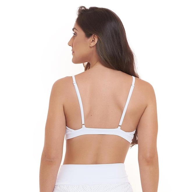O top possui forro duplo, alças com reguladores, modelagem básica tipo frente única e muito confortável.