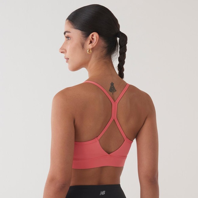 O Top New Balance Basic Yoga é feito com tecido macio e confortável para você se mover livremente durante os treinos de baixa intensidade e atividades diárias. O modelo possui bojo removível, alças finas e elástico na base para sustentação.