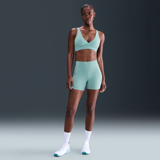 Movimente-se facilmente com este top envolvente. O suporte leve envolve o corpo com suavidade, oferecendo muita liberdade de movimentação. O forro ventilado e elegante foi combinado com um tecido muito macio de peso médio que seca rápido e acompanha seus movimentos.