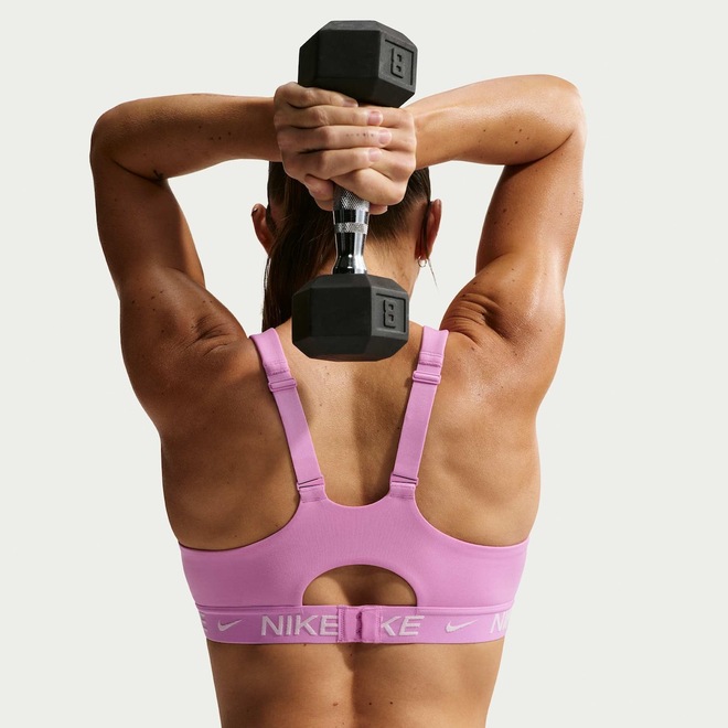Com este top esportivo elegante e confortável, você controla seu treino e seu dia. O alto suporte proporciona uma sensação de bloqueio e ajuda a manter o movimento no mínimo, tornando-o ideal para corridas e esportes de alto impacto. Tecido macio, que seca rápido oferece ao top um acabamento clean para que você possa usá-lo como quiser.
