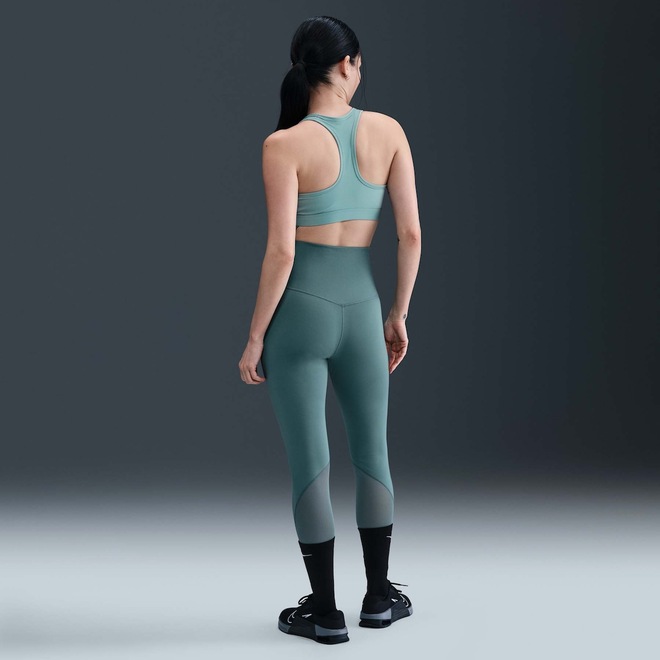 Você está em movimento. O seu bojo não deve fazer o mesmo. Os bojos costurados deste top Swoosh permanecem no lugar para que você possa trabalhar duro sem se preocupar com eles se deslocando ou dobrando. Ótimo para treinos e aulas de dança, o suporte médio oferece uma fixação confortável que ajuda a manter tudo no lugar. Além disso, o material adaptável que absorve o suor recupera rapidamente sua forma para que você fique confortável ao longo do seu treino.