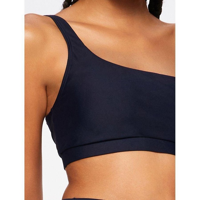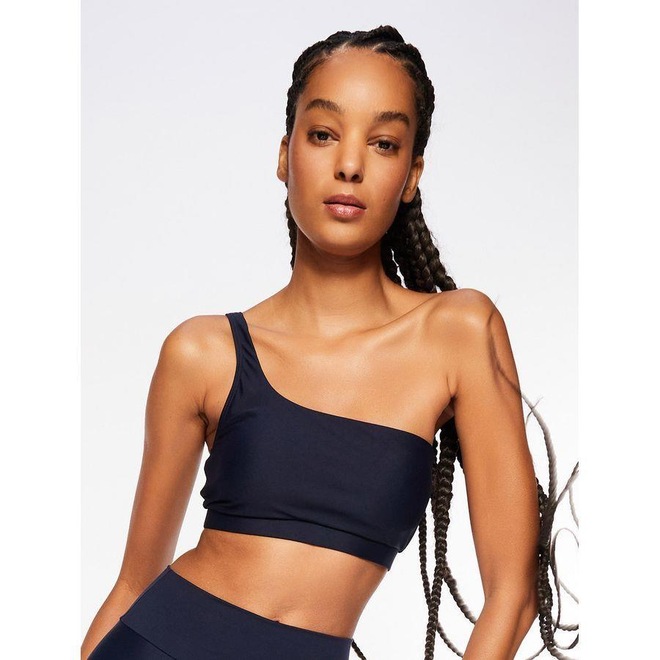 Top liso de ombro único, possui bojo removível. Sustentação leve. Referência: 4281 Coleção: Light Tamanhos: P, M, G e GG. Tecidos: Body Peach e Luna. Body Peach: 78% Poliamida e 22% Elastano. Tecido com aspecto aveludado e soft, com boa elasticidade