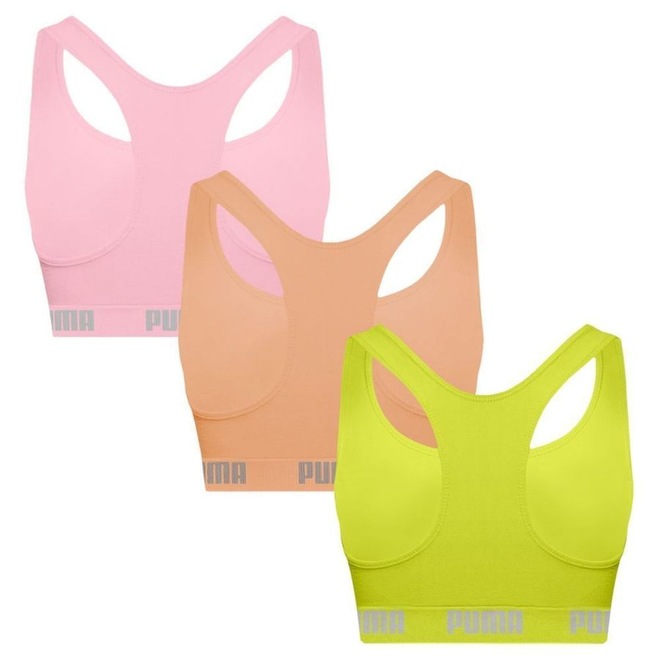Ideal para quem busca conforto e praticidade no dia a dia ou durante os treinos, o Kit 3 Tops Puma Nadador Sem Costura combina leveza e liberdade de movimentos. Com design sem bojo, acabamento canelado e alças largas, proporciona sustentação moderada e ótima vestibilidade. O destaque fica por conta da modelagem nadador e da estampa da marca na barra, que garantem estilo e firmeza ao vestir.